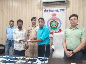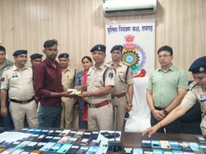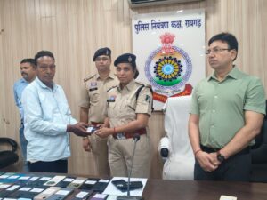 *19 अप्रैल, रायगढ़* । साइबर अपराधों पर प्रभावी नियंत्रण और आम नागरिकों की संपत्ति की सुरक्षा को लेकर रायगढ़ पुलिस को बड़ी सफलता मिली है। आज दिनांक 19/04/2026 को पुलिस कंट्रोल रूम में वरिष्ठ पुलिस अधीक्षक रायगढ़ शशि मोहन सिंह, एडिशनल एसपी श्री अनिल कुमार सोनी, साइबर डीएसपी उन्नति ठाकुर, साइबर थाना प्रभारी निरीक्षक विजय चेलक और साइबर की टीम की उपस्थिति में साइबर पुलिस थाना रायगढ़ द्वारा गुम एवं चोरी हुए 128 मोबाइल फोन रिकवर कर उनके वास्तविक स्वामियों को वितरित किए गए।